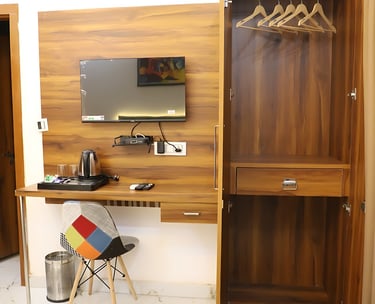 A comfortable room designed to meet your essential needs, perfect for both work and rest.